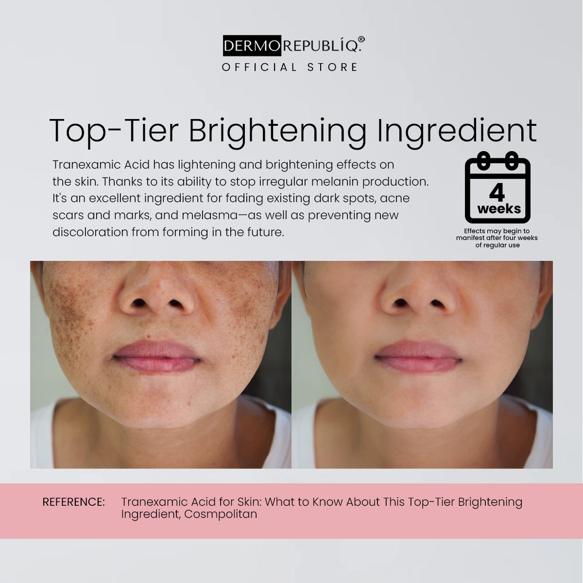 Tranexamic Acid – Acts as a brightening agent to reduce dark spots and improve hyperpigmentation