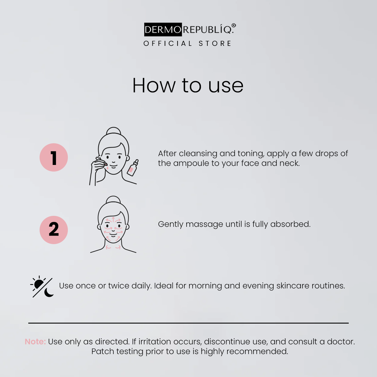 Crafted with care, our ampoule blends these active ingredients seamlessly to come up with the best formulation to reveal brighter, more nourished skin.