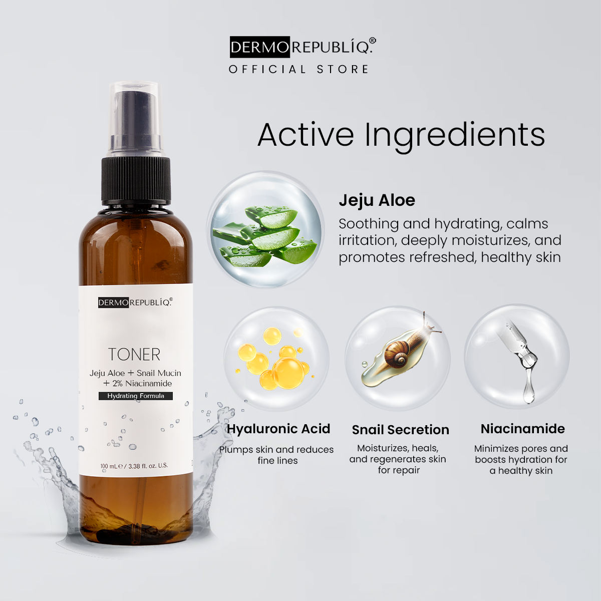 Dermorepubliq Jeju Aloe + Snail Mucin + 2% Niacinamide Hydrating Toner – 100 mL
