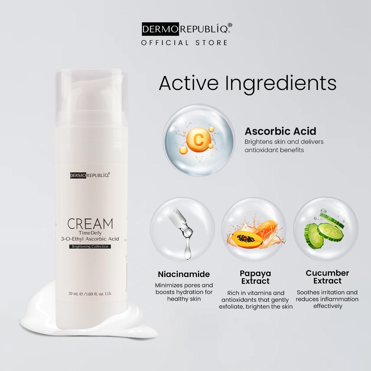Get that Fresh and Youthful Glow with our TimeDefy 3-O-Ethyl Ascorbic Acid Brightening Cream!